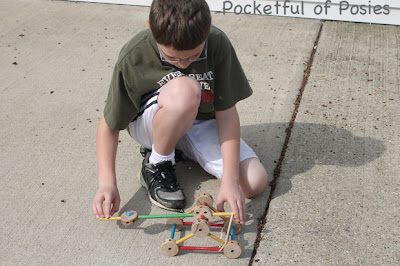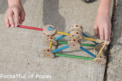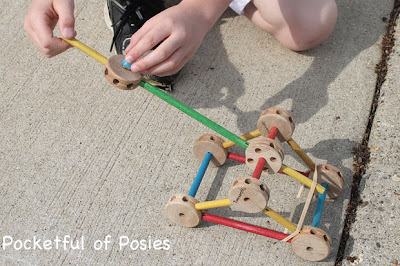 The supplies we used were Tinker Toys, a rubber band and a marble.