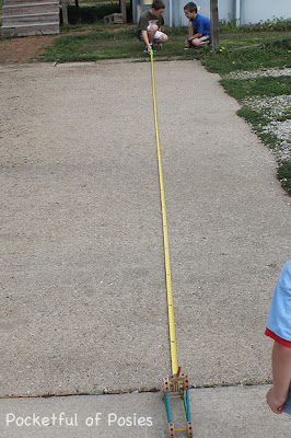 We used a tape measurer to see how far our marble went. My boys did this a few times and then decided they wanted to try to change the catapult by using different parts.