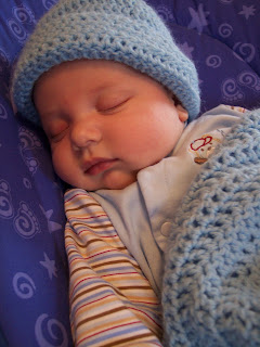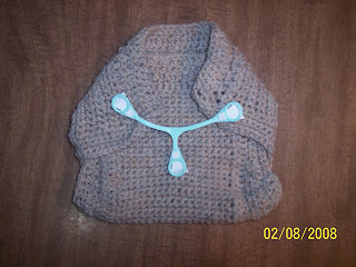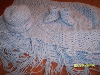 I also decided that I needed a bag to hold my crochet hook roll, yarn, and current projects. I had some placemats that I bought over a year ago when I made several placemat purses. So, I decided to use 2 of them to make a bag. I cut 2 inches off of each placemat on a short end to make straps. I folded the cut edge of these strips over and then folded it over again. I stitched the length of each strip. Next, I overcast the cut edge of each placemat to prevent raveling. I then sewed the placemats, right sides together, and made sure the cut edge of the placemat was going to be the bottom of the bag. I used a 1/2 inch seam allowance. I then folded each corner of the bottom of the bag into a triangular shape and stitched it. It is kind of hard to describe and I didn't take a picture. However, this is what makes the bag have the ability to stand upright. I turned it right side out and attached the straps using a straight stitch and went over it several times with a zigzag stitch. I cut a piece of cardboard for the bottom for extra stability. This project was very quick. (I think it took me longer to explain it here.) :-) Below is a picture of how it turned out.