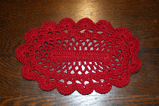 I crocheted this doily for my husband’s step-mom for Christmas. It was made using the same pattern as the one I shared in this post. I used a thicker cotton yarn than the pattern called for. I really liked how it turned out. I also crocheted one just like it for a good friend’s birthday last year. The pattern can be found here.