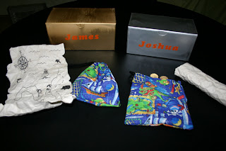 I had posted a question on DSD’s for some ideas about gifts for my older two boys. Someone suggested a treasure map and skeleton key. I never did find two skeleton keys, but I haven’t given up hope that some family member may have some. What I did do was take 2 boxes (that vitamins came in) and spray painted them with paint we already had. Then I applied some vinyl name stickers a friend had made for the kids. I had some scrap pirate fabric from a pair of shorts I made for James this summer. I made two small drawstring bags from it and placed some golden coins we had gotten somewhere years ago. They aren’t worth anything, but the boys didn’t care. I also printed out treasure maps from a google image I found. I printed them on legal size paper and cut around the lines that were already on the map. Then I wadded up the paper and soaked it in very strong tea for a few minutes. I squeezed most of the water out and laid them flat to dry. Another free gift from things we had around the house. The boys love to pretend.