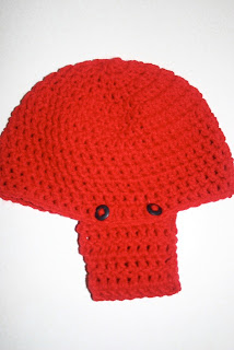 This last hat is for my little guy for Christmas. I started to make a hat with ear flaps and then thought it might be neat to just make each side have long flaps so it would be a hat and scarf all in one. Well, as I was starting down one side I realized I was running low on red and didn’t have more. So, I improvised and added buttons so that the big flap will go under his neck and be scarf-like (Is that a word?) This was purely experimental, but it did seem to be a good fit when I tried it on him. If it keeps him warm then it will have served its purpose.