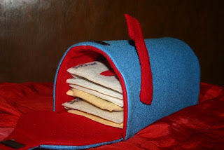 I made this felt mailbox set this past weekend for my middle son for Christmas. I used the mailbox tutorial I found at Giver's Log. I did not have to go out and buy any materials for this project, so I was able to frugally make this set. I even had the purse magnet set already which is used to allow the flag to be able to go up and down. I have seen similar sets online for around $50. I feel like the savings was worth any time spent on this project.