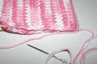 Blunt tip tapestry needle to weave in ends and stitch the sponge closed.