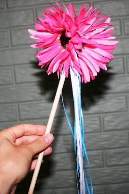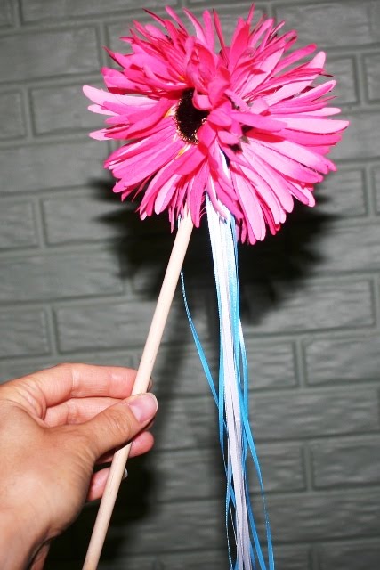 You now have a flower princess wand that any little girl would love to play with. Use your own judgement when allowing a child younger than three to play with a wand like this. Also, if you wanted to dress up the wand even more you could paint the dowel or wrap it in ribbon.