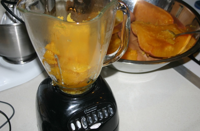 I don’t have a very big food processor, so I used my blender to puree the pumpkin pulp. I added a little water to help with the blending process.