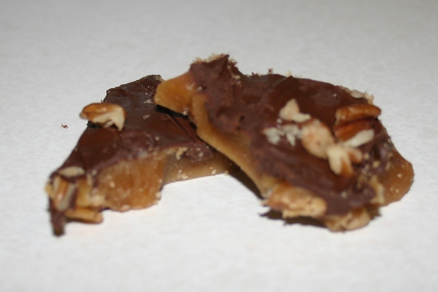 I tried the toffee recipe I found at French Knots as well today. This toffee was easy to make and tasty, too. Boy, I am getting hungry looking at all of these goodies again.