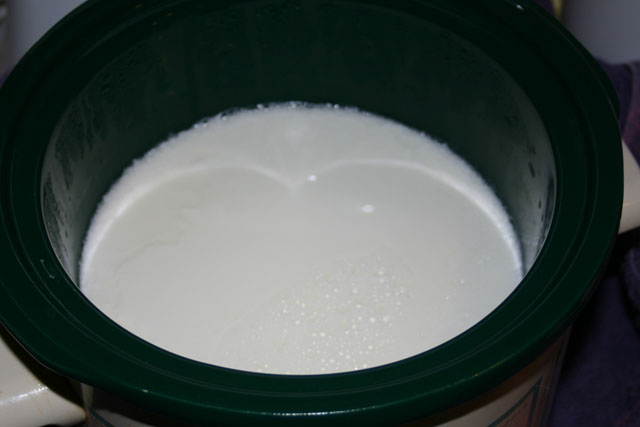 Before I share our menu for the week I wanted to talk to you about homemade yogurt. I have made yogurt a few times using a canning jar and a heating pad. This worked fine, but was a little bit fussy and only made 1 quart. I found that we were needing more yogurt than that in a week, so I decided to try to famous crockpot yogurt recipe from Crockpot 365.