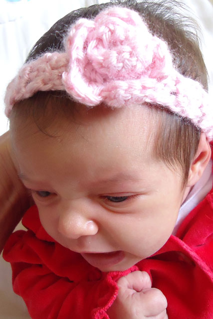 My oldest daughter Julia has been waiting for a sister for a long time. She absolutely adores Janna. Since Julia loves to wear headbands I thought it would be fun to make the girls ones that match. Thus, a new crochet pattern was born.