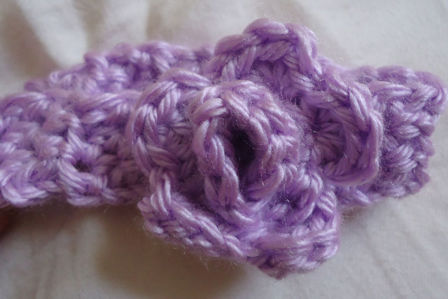 This pattern is very simple and I am sure even a beginner at crocheting could make one. I will share two headband sizes with you and a pattern for a simple flower that could be sewn onto the headband like this.