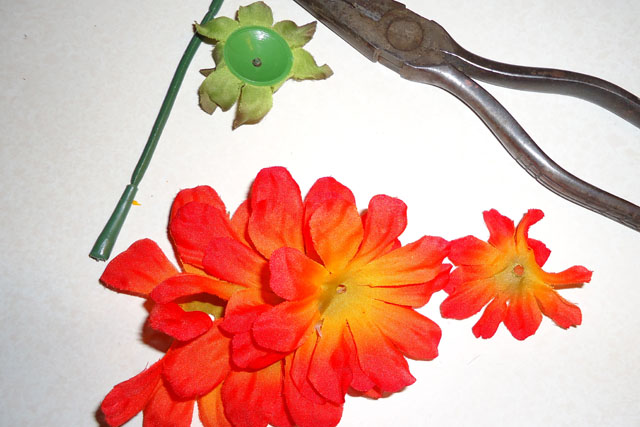 I decided I wanted to have a flower on this headband, so I used my needle nosed pliers to take apart an artificial flower.