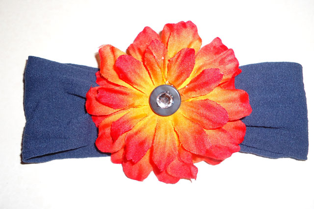 9. Now your headband is complete. Because you didn't put glue everywhere under the center band part, you can now insert an alligator clip with a bow or flower on it through the center. This provides endless possibilities for just one headband.