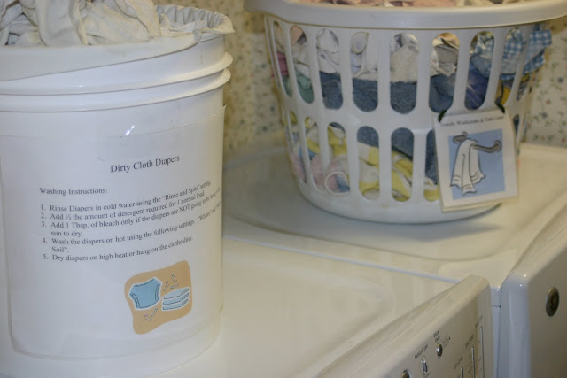 A couple of years ago I came up with an organizational system for our dirty laundry that has, for the most part, worked for us. I have a laundry basket for dark clothes, light clothes, towels and a bucket for cloth diapers. I even printed out pictures, laminated them and hung them above (or on) the baskets to make it easier for my family to sort their clothes.