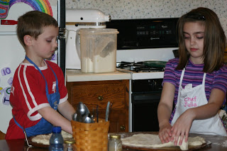 The pizzas were made using my tried and true pizza crust recipe. I used a combination of whole wheat flour and unbleached flour since we were having company. However, for my family we have been using whole wheat flour for the past couple of years.