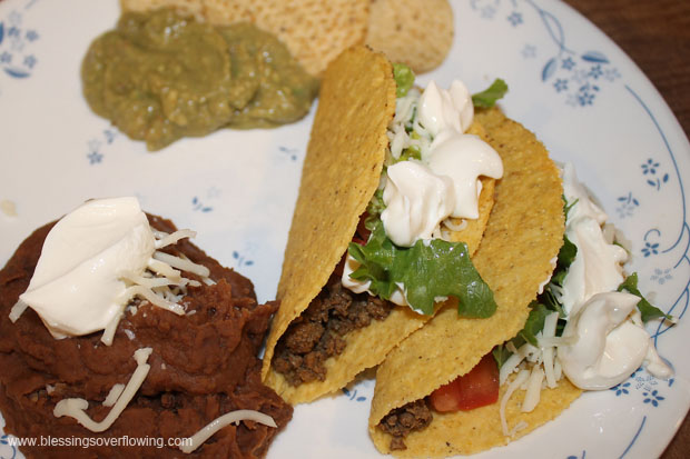 One of our favorite, kid-pleasing meals is taco night. My husband says we need to have “Taco Tuesday” every week. :) I don’t fix tacos every week, but I do try to serve them at least every other week.