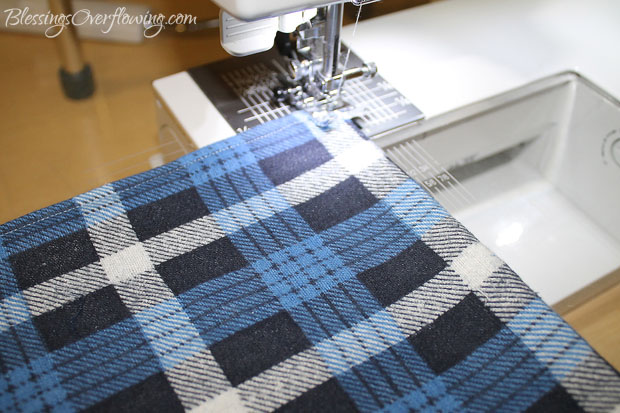 Place the two pieces of flannel together, with right sides together, and stitch around the outside edges using a 1/4 inch seam allowance. Leave a 2-3 inch opening for turning.