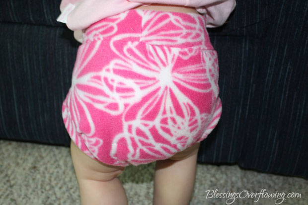 This cover is made from PUL which stands for polyurethane laminate. The nice thing about a PUL cover is that you don’t have to worry about your baby’s clothes having any wetness on them if they have a very wet diaper.