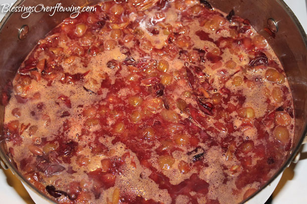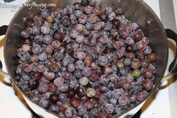 Look at how pretty those grapes are! First, I washed the grapes and then put them in a pan. Then I added about 1 cup of water to the pan. I didn’t measure how many grapes I had to get a perfect water to grape ratio. I was winging it.
