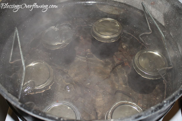When the 5 minutes were up I removed the jars from the canner and set them on a towel to cool. As they were cooling I heard the lovely pinging sound that jars make when they are sealed. Music to my ears. 🙂