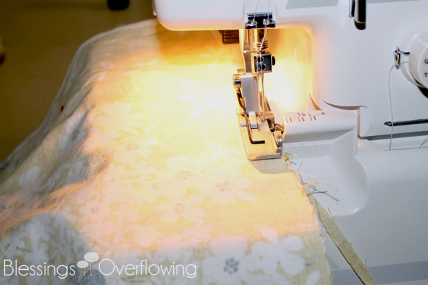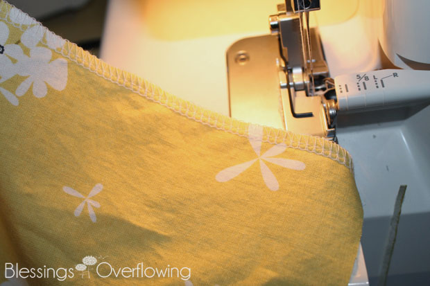 2. Serge or overcast (zig-zag stitch) along the bottom of each of the two pieces of fabric you cut in step 1. If serging, try not to cut much, if any, fabric off while you serge.