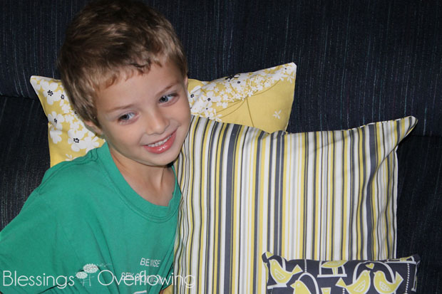 I tend to have a sort of zipper-sewing phobia, but I decided to try to conquer my fears and make zippered pillows so that I can easily wash the covers if necessary. With 3 boys I am going to guess it will be necessary.