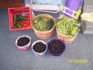 My mom gave us over half a gallon of green beans, my in-laws gave us some sweet corn, and a friend gave me a huge box of cucumbers. We are truly been blessed.