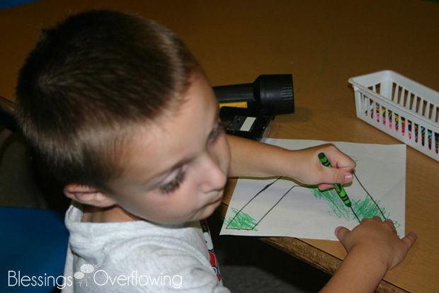The children were allowed to color their letter “A” any colors they wished. However, we did talk about alligators being green. I think my son may have been the only child to use all green while coloring.