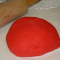 During their free-play time I cut out the letters and got everything laid out for the next steps. When they came back to the activity it was time to glue the letter to a piece of construction paper (Red is our color of the week.), and glue on the eyes and teeth.
