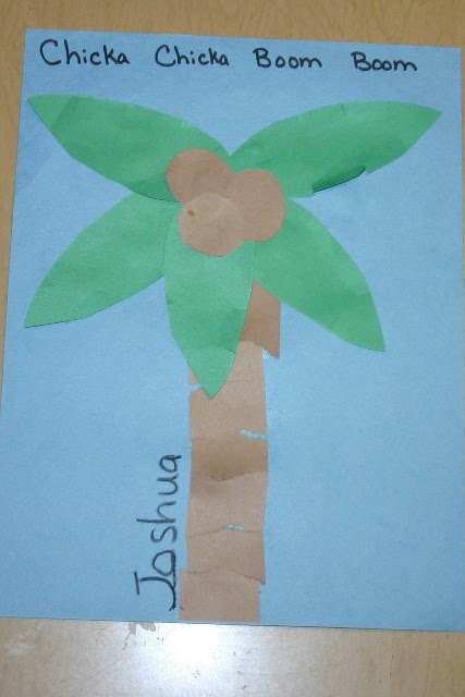 After our story we made our own coconut trees. The idea is based on an idea I found in the Chicka Chicka Boom Boom (Literature Notes) I got years ago from Carson Dellosa.