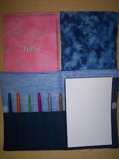 I have been making more things for Christmas gifts. I made 14 of the Little Artist Drawing Cases pictured above. They are for various kids on our Christmas list. I followed the tutorial on a site. Thankfully, I printed them because the link no longer works. Here is a link I found from the same site. http://craftapple.wordpress.com/2006/12/06/little-artist-crayon-cases/ It doesn’t have the instructions, though. The cases are made from fabric I already had in my stash. My husband made the notepads and made enough for each child to have 2 extras. I found a good deal on the twistable crayons online. Hopefully, the kids will like them and be able to use them to stay entertained when out and about.