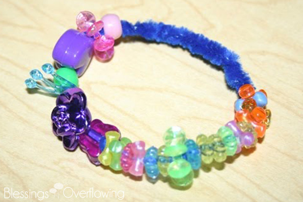 To encourage fine motor skills the children strung beads onto a blue pipe cleaner to make bracelets. They loved making their blue beaded bracelets. Say that three times fast. 🙂