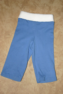 I used another pair of pants to cut the curve and to know where to cut them at the top. Then I just stitched them together. I made a waistband out of fleece (too bad I didn’t have any that matched). They were super easy since the side seams and bottom hem were already sewn. I think I will have to make some more of these.