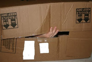 The boys used clear packing tape to arrange the cardboard tubes on one of our closet doors.