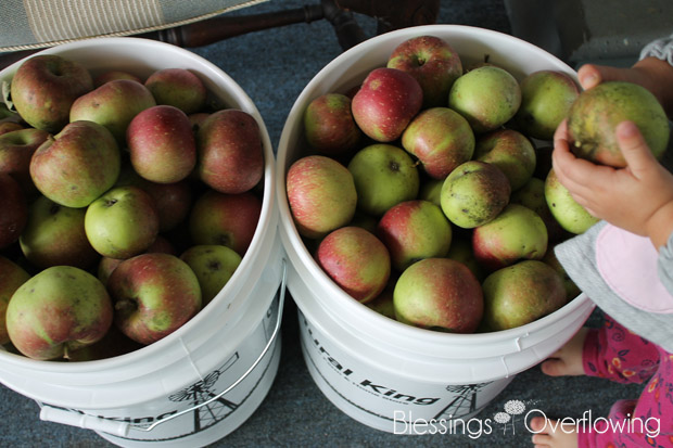 When my in-laws gave us 6 buckets of apples (with more to come) they asked me if I would make them a few jars of apple butter in return. No problem!
