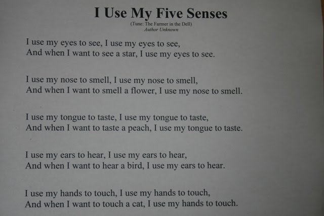 For those of you that are interested in downloading and printing the five senses book I created, you may do so by clicking the link below.