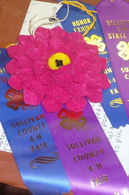 Her arts & crafts project was this very involved felt dahlia brooch. She was so excited to get a blue ribbon, an honor ribbon, champion and state fair selection on it.