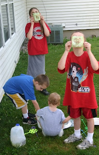 What can keep four children playing happily so their mother can hang laundry on the clothesline? Homemade bubbles!