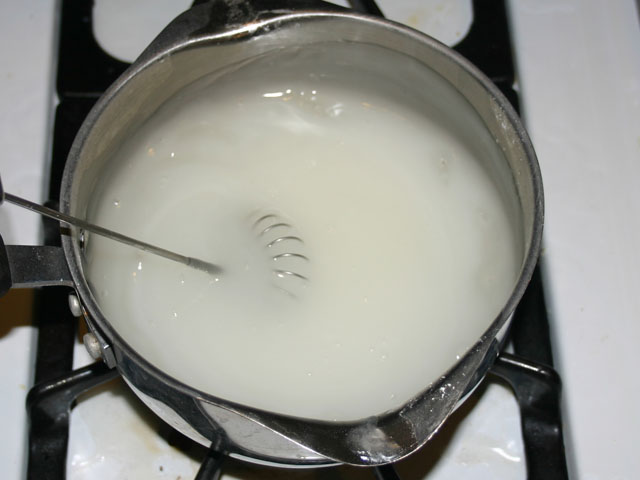 3. Cook the mixture over low heat, stirring frequently, until it is smooth and gel like. Once it starts to boil, turn it off. It will take at least 5 minutes to get to this point.