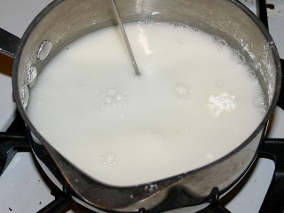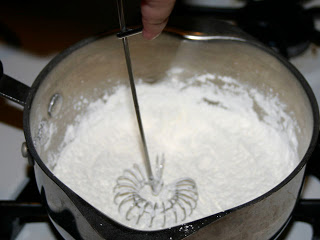 For our finger painting yesterday I tried a new recipe. I found the same recipe on multiple sites, so I am not sure who to give credit to. I took pictures of the process so that you could see exactly how to make this recipe.