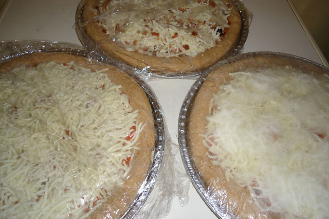 *Alternatively, the pizzas can be covered with plastic wrap or foil and frozen until ready to eat.