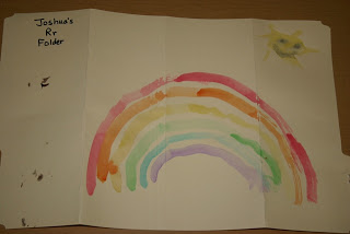 The children had used watercolor paints to make rainbows on their folders on Wednesday.