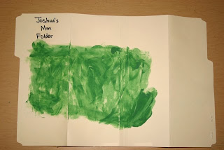 The children had painted their folders on Wednesday with marshmallows. My son made a large rectangle on his folder.