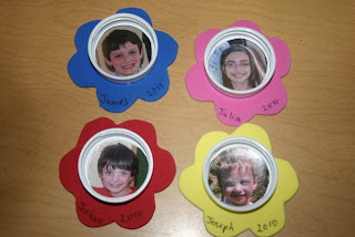 We also made some cute photo magnets from lids for mothers day.