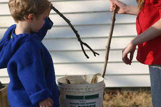 I love to watch my children playing outside. They vary in age from nearly 11 to 2 1/2, so they obviously have varied interests. However, give them some sticks, water, grass, and a bucket and they can entertain themselves for a long time.