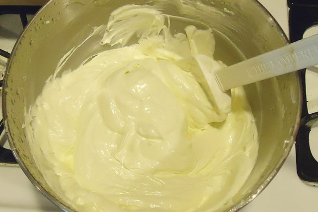 I use my whisk attachment for my mixer and mix the sticks of butter for a minute or two. Then I gradually add the oil. Finally, slowly add the water and mix until all of the ingredients are mixed and are “fluffy”. Place the butter into a lidded container and store in the refrigerator until ready to use.