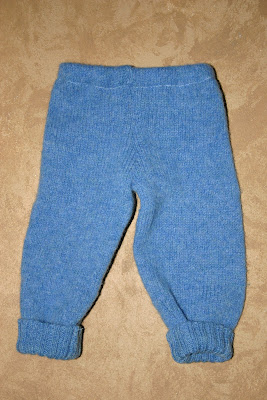 I also used the sleeves to make the longies pictured below. I followed this tutorial for making them. The sweater was small so the longies would fit a newborn. They are too small for my baby, so I will have to find someone to either give them to or sell them.