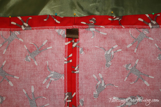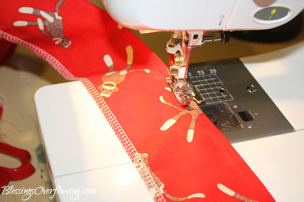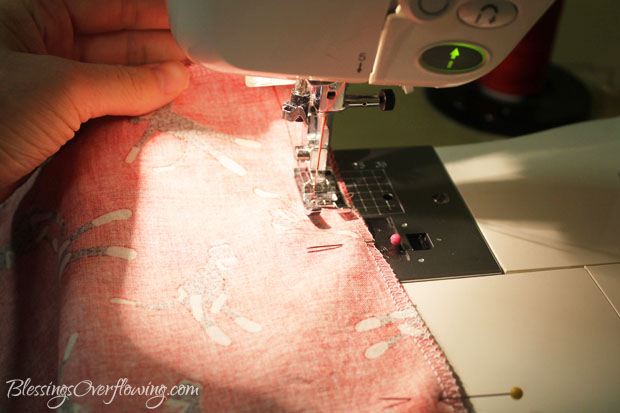 Step 12: Using about an 1/8 inch seam allowance, stitch the hem in place. I stitched from the top because I like to see what the finished hem will look like, but that is just me. It doesn’t mean it is the correct way to sew a hem either. 🙂