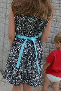 Since the dress was a little big at the sides I made thread loops on the sides of the dress to thread some grosgrain ribbon through.