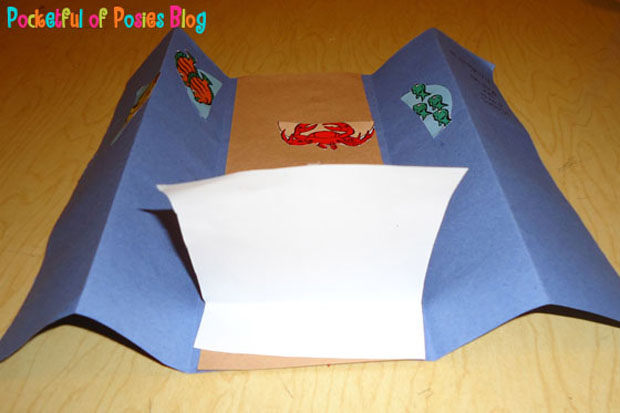 The first thing we did was to fold a blue piece of construction paper like shown in this post. Basically, we folded the paper into thirds and then accordion folded each side.