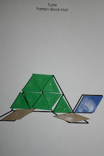 Later we got out the pattern blocks and everyone filled in this turtle pattern block mat from Prekinders.
